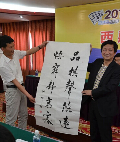 山東體育局副局長王延奎致詞,提到了明年山東將主辦第三屆全國智力運動會,目前正在緊鑼密鼓地籌備。這次圍甲聯(lián)賽在西藏舉辦,山東也非常重視,派出了周睿羊、范廷鈺、江維杰三位世界冠軍的最強組合。最后王延奎??完爮V西華藍隊取得好成績,祝山東隊取得更好的成績。