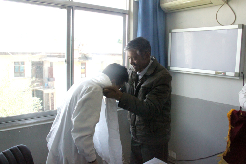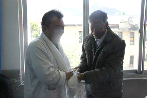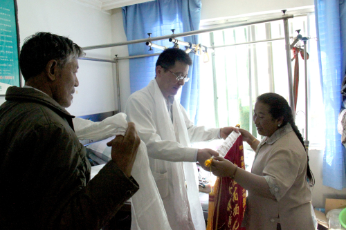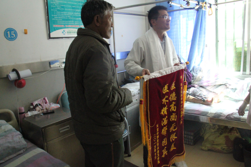 患者及家屬在出院當(dāng)天,對我院的骨科醫(yī)生獻(xiàn)上哈達(dá),錦旗表達(dá)了感謝之情。