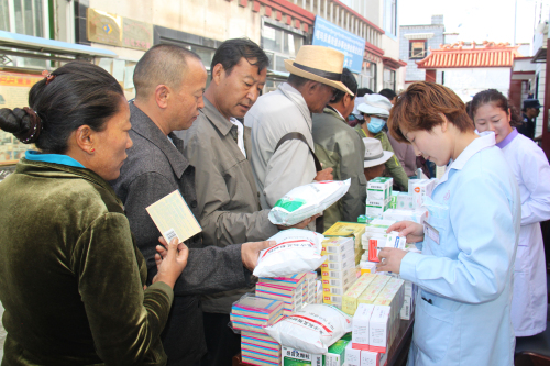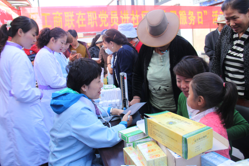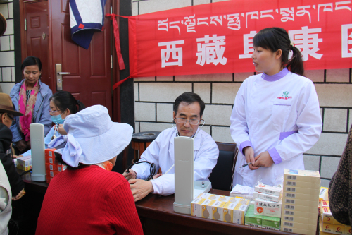 根據(jù)自治區(qū)工商聯(lián)《關(guān)于深化區(qū)直機關(guān)在職黨員到社區(qū)服務(wù)群眾活動》的統(tǒng)一安排:阜康醫(yī)藥有限公司四個黨支部,在張德才總院長的帶領(lǐng)下,一行8人在2015年8月8日上午到拉薩市城關(guān)區(qū)嘎瑪貢桑社區(qū)進行義診活動,帶著1.5萬余元藥品和便攜式B超,心電圖等。在半天時間內(nèi)貢義診380余人,為社區(qū)群眾進行了測量血壓、發(fā)放藥品、健康咨詢等,受到了社區(qū)群眾的熱烈歡迎。期間正在慰問群眾的自治區(qū)政協(xié)副主席阿沛晉源,和區(qū)統(tǒng)戰(zhàn)部副部長、區(qū)工商聯(lián)黨組副書記李瑞富等領(lǐng)導(dǎo)的高度評價。