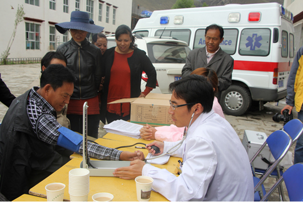 對于過為尼木縣鄉(xiāng)村小學老師們的體檢,董發(fā)善醫(yī)生說:“大部分老師都患有血管神經(jīng)性頭疼和不同程度的胃病和膽囊疾病。這是由于在鄉(xiāng)村學校中,老師們工作繁忙,經(jīng)常忘記吃飯或者到了吃飯的時候就湊合吃幾片風干肉,喝幾杯酥油茶。這是造成鄉(xiāng)村老師腸胃和膽囊疾病的原因。此外,由于老師們經(jīng)常站著講課,腰椎疾病的患病率比其他行業(yè)的要高。”在體檢的同時,醫(yī)護人員還向老師們發(fā)放了常見疾病預(yù)防知識的宣傳材料。