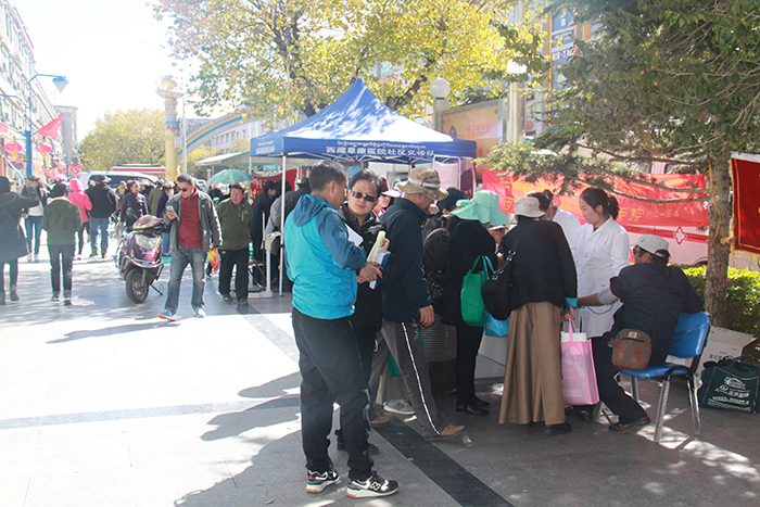 10月17日上午, 2016年“扶貧日”大型義診活動(dòng)在拉薩市宇拓路隆重舉行。按照區(qū)衛(wèi)計(jì)委通知,西藏阜康醫(yī)院抽調(diào)4名專(zhuān)家組成“精準(zhǔn)扶貧,健康扶貧小分隊(duì)”在拉薩市宇拓路設(shè)點(diǎn)開(kāi)展以送醫(yī)送藥、送檢查、免費(fèi)義診、健康指導(dǎo)和咨詢服務(wù)等為一體的大型義診服務(wù)活動(dòng)。
