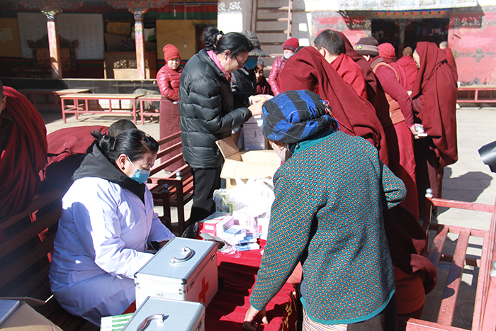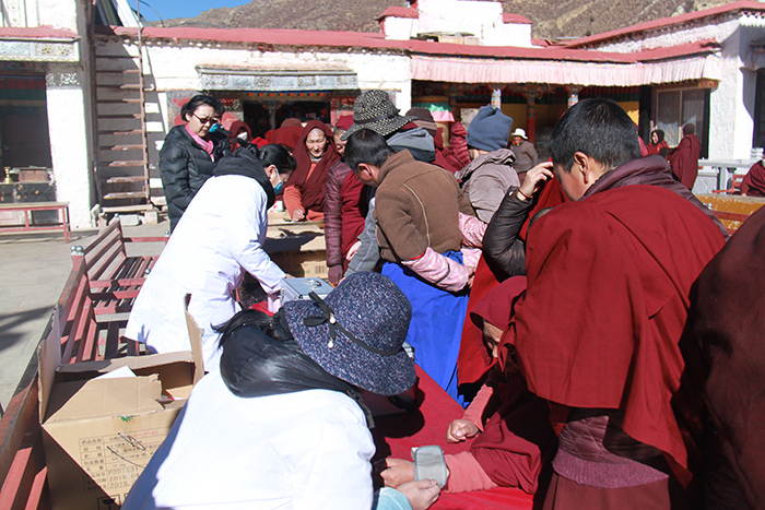 為進一步體現(xiàn)黨和政府對廣大僧眾的關心關愛,切實解決僧人看病難的實際困難,保障僧人身心健康,落實各項利寺惠僧政策,2017年2月11日,區(qū)黨委老干部局聯(lián)合西藏阜康醫(yī)院專家來到曲水縣雄色寺,為當?shù)厣姾托沤倘罕婇_展送醫(yī)送藥免費義診活動。