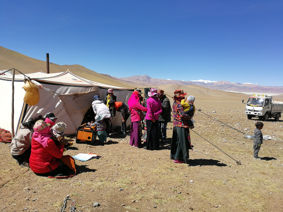 我仔細(xì)觀察四組前來的牧民,不管大人小孩,衣服都是干干凈凈的。那普居委會(huì)由李毛措主任團(tuán)隊(duì)駐村管理,那普居委會(huì)是本地的示范居委會(huì),因?yàn)檎芾淼卯?dāng),衛(wèi)生安全普及到位,居委會(huì)傳染病、包蟲病的感染人數(shù)很少。他告訴我,牧民們要穿戴干凈、講衛(wèi)生其實(shí)很難,他們要到很遠(yuǎn)的地方才有水源,而且天氣惡劣寒冷,洗衣服都是一件困難的事情。
