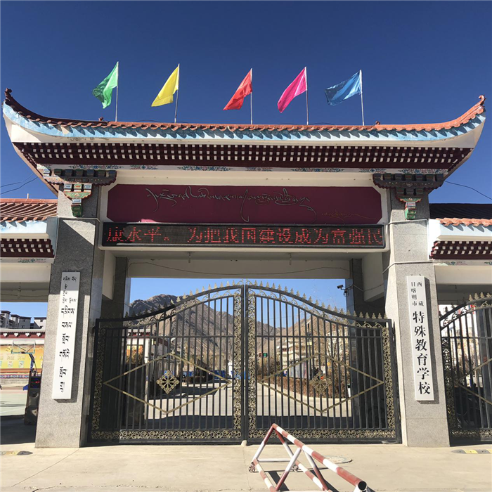 日喀則市特殊教育學(xué)校于2008年開始籌備,2010年正式招生,主要招生對(duì)象是日喀則18個(gè)縣區(qū)和阿里地區(qū)的聾啞、盲、智障的孩子,學(xué)?,F(xiàn)有14個(gè)教學(xué)班,在校學(xué)生225人。學(xué)校提供九年義務(wù)教育和基礎(chǔ)職業(yè)技能培訓(xùn),實(shí)行封閉式管理。