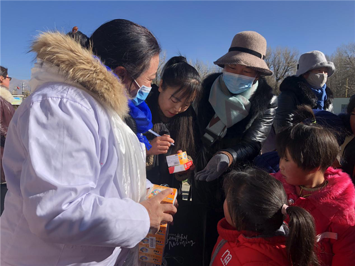 捐贈(zèng)儀式結(jié)束后,阜康醫(yī)院義診隊(duì)為60多名學(xué)生免費(fèi)就診,發(fā)放藥品。義診隊(duì)醫(yī)生細(xì)心為孩子們看病,并耐心講解藥品的服用方法及注意事項(xiàng),老師仔細(xì)的在每個(gè)孩子的藥盒上注明孩子姓名及用法。