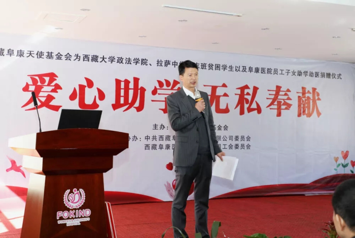 拉薩中學(xué)校長陳飛,向西藏阜康天使基金會表示了衷心的感謝。他表示:阜康是西藏民營醫(yī)療行業(yè)的典范,王斌董事長在發(fā)展事業(yè)的同時,從未忘記回饋社會,成立阜康天使基金會,慷慨解囊,幫助西藏教育事業(yè)的發(fā)展,切實(shí)體現(xiàn)了“仁心仁術(shù),止于至善”的阜康企業(yè)文化精神。