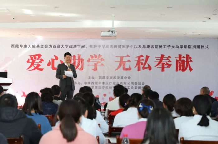 11月28日下午3點(diǎn),“西藏阜康天使基金會助學(xué)助醫(yī)捐贈儀式”在西藏阜康醫(yī)院婦產(chǎn)兒童分院四樓會議室舉行。西藏阜康天使基金會理事長、西藏阜康醫(yī)療股份有限公司黨委書記、董事長王斌,西藏大學(xué)政法學(xué)院黨委書記羅布,拉薩中學(xué)校長陳飛,受助學(xué)生家長代表,受助學(xué)生代表以及阜康醫(yī)療相關(guān)領(lǐng)導(dǎo)出席了本次會議。會議由西藏大學(xué)政法學(xué)院張昊文主持。