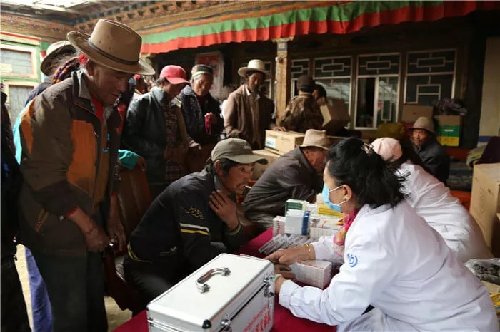 據(jù)了解,芒熱牧村農(nóng)牧民因交通不便、語言溝通等問題,就醫(yī)購藥十分不便。為緩解這一難題,積極響應(yīng)國家號召,推進(jìn)健康扶貧事業(yè)的發(fā)展,“西藏阜康醫(yī)療股份有限公司”應(yīng)當(dāng)?shù)伛v村工作隊的邀請,組織義診隊協(xié)助基金會開展本次活動。