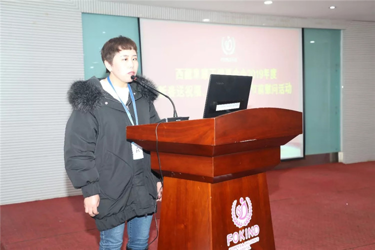 西藏阜康天使基金會秘書長吉拉帶來了阜康天使基金會創(chuàng)始人王斌、劉瀟瀟對困難員工的祝福和慰問,勉勵大家努力工作,與阜康共同進步,在走向幸福的路上一個都不能少,并祝大家過一個幸福快樂年!由于此次受助人員都是藏族員工,吉拉秘書長用藏語鼓勵大家積極生活、努力工作,要用一顆感恩的心回報社會。阜康天使基金會將在區(qū)黨委、政府的領導下,緊跟時代步伐,發(fā)展創(chuàng)新,爭取在助醫(yī)、助學、助困上幫助到更多的人。