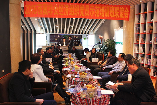 2016年3月25日及3月27日下午,拉薩知名會(huì)所企業(yè)座談會(huì)及2015西藏非公經(jīng)濟(jì)組織黨員示范培訓(xùn)班聯(lián)誼會(huì)先后在西藏阜康(國(guó)際)健康體檢中心咖啡廳舉行。拉薩各知名會(huì)所企業(yè)代表、2015西藏非公經(jīng)濟(jì)組織黨員示范培訓(xùn)班成員:西藏阜康醫(yī)藥發(fā)展有限公司總經(jīng)理、黨委紀(jì)檢委員陳彬,西藏阜康醫(yī)藥發(fā)展有限公司黨支部青年委員、董秘李霞,西藏雅喜實(shí)業(yè)公司黨支部副書記、董秘雷滿興,拉薩遠(yuǎn)大建材有限公司支部副書記周西平,拉薩市城關(guān)區(qū)億鑫廢舊回收有限公司黨支部書記李曉飛,江蘇商會(huì)常務(wù)理事梁鉅松,拉薩市申新商貿(mào)有限公司董事長(zhǎng)趙萬(wàn)才,星宇通訊器材有限公司黨支部書記王金剛,西藏華鈺礦業(yè)集團(tuán)黨委副書記劉志峰,西藏浙江商會(huì)黨支部書記陳炬亦,西藏蓋天力機(jī)械有限公司總經(jīng)理王東勝,西藏百益大酒店總經(jīng)理、法人代表曹光亮,拉薩鼎業(yè)制粉有限公司副總經(jīng)理郭倩,西藏泰成餐飲有限公司黨支部負(fù)責(zé)人孫宏霞,西藏易境旅游景觀設(shè)計(jì)有限公司黨支部書記李川及我院扎西頓珠副院長(zhǎng),敖德秀副院長(zhǎng)、黨委專職副書記,張治副院長(zhǎng),各醫(yī)院辦公室主任等先后參加了兩次會(huì)議。