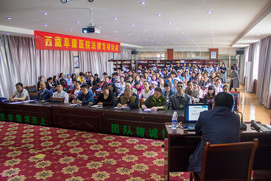 為深入學習貫徹習近平總書記對“兩學一做”學習教育中作出的關(guān)于“做人做事堅守法律底線”重要指示精神。由公司黨委組織于2016年5月25日邀請了西藏偉豪律師事務(wù)所律師、西藏阜康醫(yī)院法律顧問胡可同志為公司職工進行為期兩天的法律法規(guī)專項培訓(xùn)。公司共有350位職工參加了此次培訓(xùn)學習。