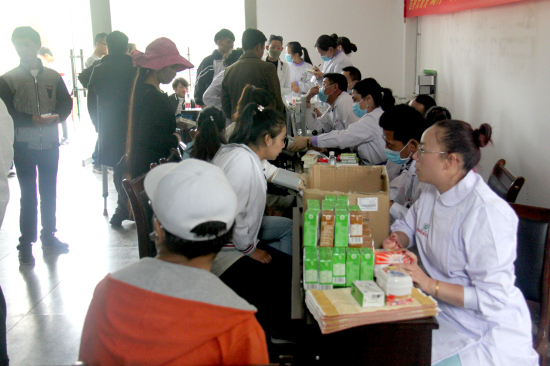 義診活動剛開始,義診臺就被圍個水泄不通,此外,黨支部的醫(yī)務(wù)人員們?yōu)榈群驒z查的殘疾人發(fā)放有愛心早餐及日常用品等。義診過程中,醫(yī)務(wù)人員分工協(xié)作,井然有序地為前來義診的殘疾人量血壓、測血糖、聽心率等,同時認真問詢并聽取他們講述自己的病癥,為一些需要服藥的殘疾人開具處方和免費發(fā)放藥品,并一一介紹藥品的服用方法、劑量等,也為一些長期服藥的殘疾人調(diào)整了治療方案,更耐心提醒他們要注意養(yǎng)成健康的生活方式,向他們宣傳健康保健知識。
