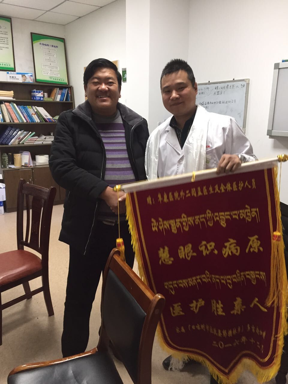 2016年12月1日,患者曲宗出現(xiàn)上腹部疼痛,嘔吐、寒戰(zhàn)、胸悶等癥狀,患者曲宗到地區(qū)醫(yī)院就診,給予輸液治療一天,未見好轉(zhuǎn)。遂來我院,經(jīng)門診檢查診斷為“急性闌尾炎”后收治到外二科,經(jīng)多名外二科醫(yī)生會(huì)診后,決定立即為患者曲宗進(jìn)行“急性闌尾炎”手術(shù),手術(shù)非常順利,在醫(yī)護(hù)人員的精心照顧下央宗康復(fù)很快,為表感謝,患者家屬出院時(shí)送來錦旗。