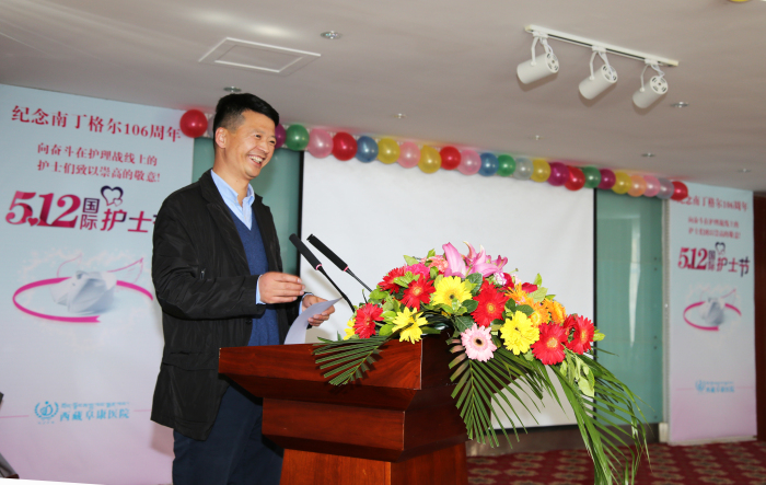 王斌董事長致辭,他代表西藏阜康醫(yī)療股份有限公司全體股東向工作在一線的護(hù)理工作者表示深深的謝意,同時感謝一直支持他們的家人和親友,王斌董事長表示他一定會竭盡所能帶領(lǐng)醫(yī)院領(lǐng)導(dǎo)班子為我院護(hù)士們創(chuàng)造一個更好的工作環(huán)境和更加滿意的福利待遇。