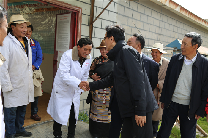 阿沛·晉源主席和施工人員一一握手慰問,囑咐他們在施工過程中一定注意安全!要把衛(wèi)生院建成標(biāo)桿衛(wèi)生院,造福夏瑪鄉(xiāng)農(nóng)牧民群眾!看完即將竣工的衛(wèi)生院他又來到老舊的衛(wèi)生院看望正在工作的醫(yī)護(hù)人員,與醫(yī)護(hù)人員和患者親切握手交談,囑咐他們一定多加學(xué)習(xí)和培訓(xùn),用心工作,搬到新的衛(wèi)生院后一定不要辜負(fù)阜康全體員工的期望!接著晉源主席也指示阜康要繼續(xù)幫助衛(wèi)生院,切實(shí)提高衛(wèi)生院工作人員醫(yī)療水平,將夏瑪鄉(xiāng)衛(wèi)生院打造成全縣乃至全區(qū)的標(biāo)桿衛(wèi)生院!