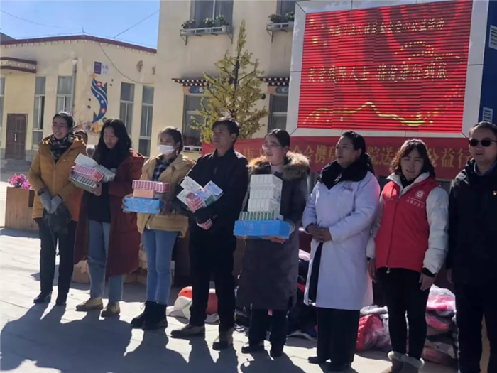 校長次仁拉姆向西藏阜康天使基金會(huì)贈(zèng)送錦旗
