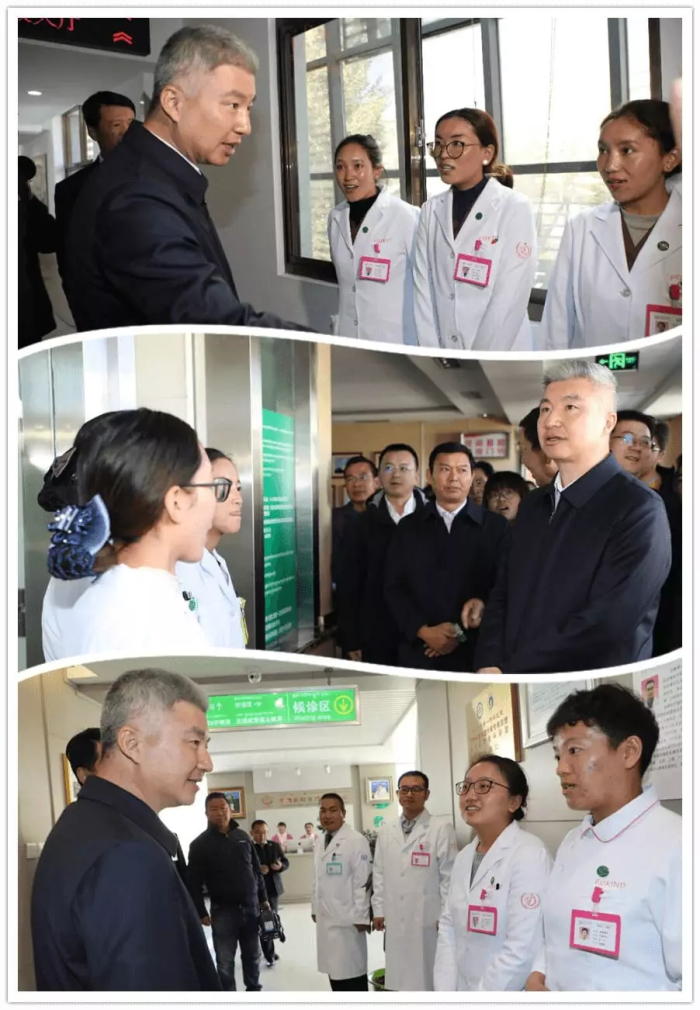 西藏阜康醫(yī)療股份有限公司黨委書記、董事長王斌率全院院級領(lǐng)導(dǎo)陪同西藏自治區(qū)黨委副書記、政府常務(wù)副主席莊嚴(yán)一行進行調(diào)研