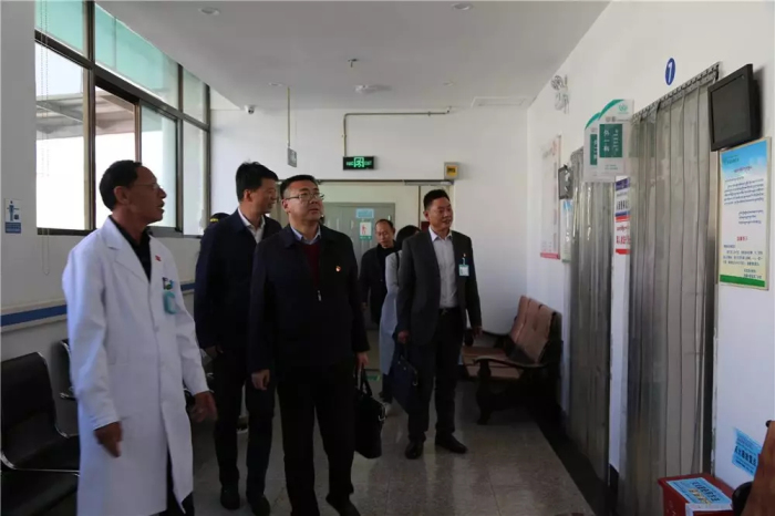宋留柱書記一行在王斌等各位院領(lǐng)導(dǎo)的陪同下參觀了阜康醫(yī)院放射科、門急診科、標(biāo)準(zhǔn)化病房、院史館、黨員活動室等。