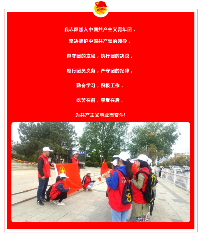 上午9時,公司共產主義青年團全體成員在紀念碑前重溫中國共產主義青年團入團誓詞: