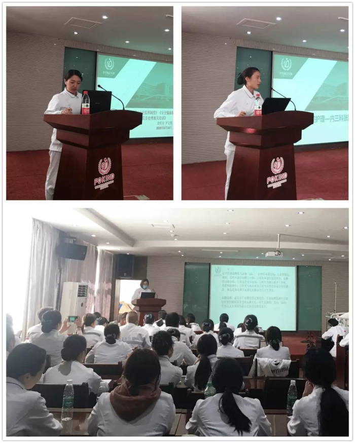 6月19日下午,在院長助理、護理部主任李麗的指導(dǎo)下,我部組織了阜康醫(yī)院共62名護理人員在阜康婦產(chǎn)兒童醫(yī)院四樓會議室開展了以“口腔護理”、“血糖監(jiān)測”、“查對制度、交接班制度、安全輸血制度、護理糾紛防范及處理”的相關(guān)培訓(xùn)。內(nèi)三科護士長張穎結(jié)合科室遇到的口腔護理操作,針對口腔護理用物準(zhǔn)備、口腔護理的適應(yīng)癥、常用溶液的作用、口腔護理的操作流程等方面進行了講解;外二科護士長陳群就血糖監(jiān)測結(jié)合臨床經(jīng)驗針對血糖監(jiān)測的目的,操作流程及對糖尿病患者的健康宣教進行講解;治療室護士長尹文雋在講解制度中再三強調(diào)我們護理操作中要時刻銘記“患者需求至上”的核心價值觀,做到患者安全、護理安全,全心全力為患者服務(wù)。