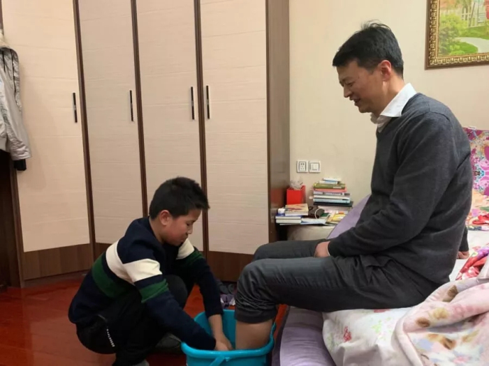 每逢過節(jié)回家,王斌和劉瀟瀟到家后第一件事就是給自己的父母打一盆熱水,為父母洗腳,在孩子的面前以身作則、言傳身教。