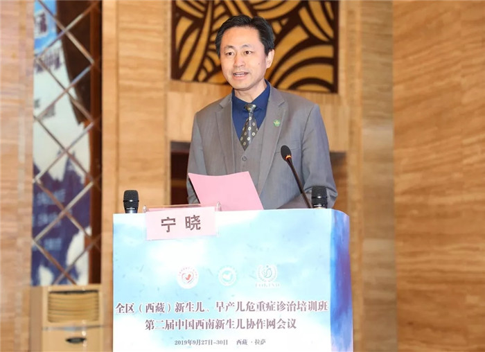 西藏阜康醫(yī)療股份有限公司總裁、西藏阜康醫(yī)院院長寧曉代表承辦方對中華醫(yī)學會兒科分會新生兒學組、中國西南新生兒協(xié)作網(wǎng)、重慶醫(yī)科大學附屬兒童醫(yī)院新生兒中心和西藏醫(yī)學會兒科專委會的信任和支持表示謝意,并預祝會議取得圓滿成功;