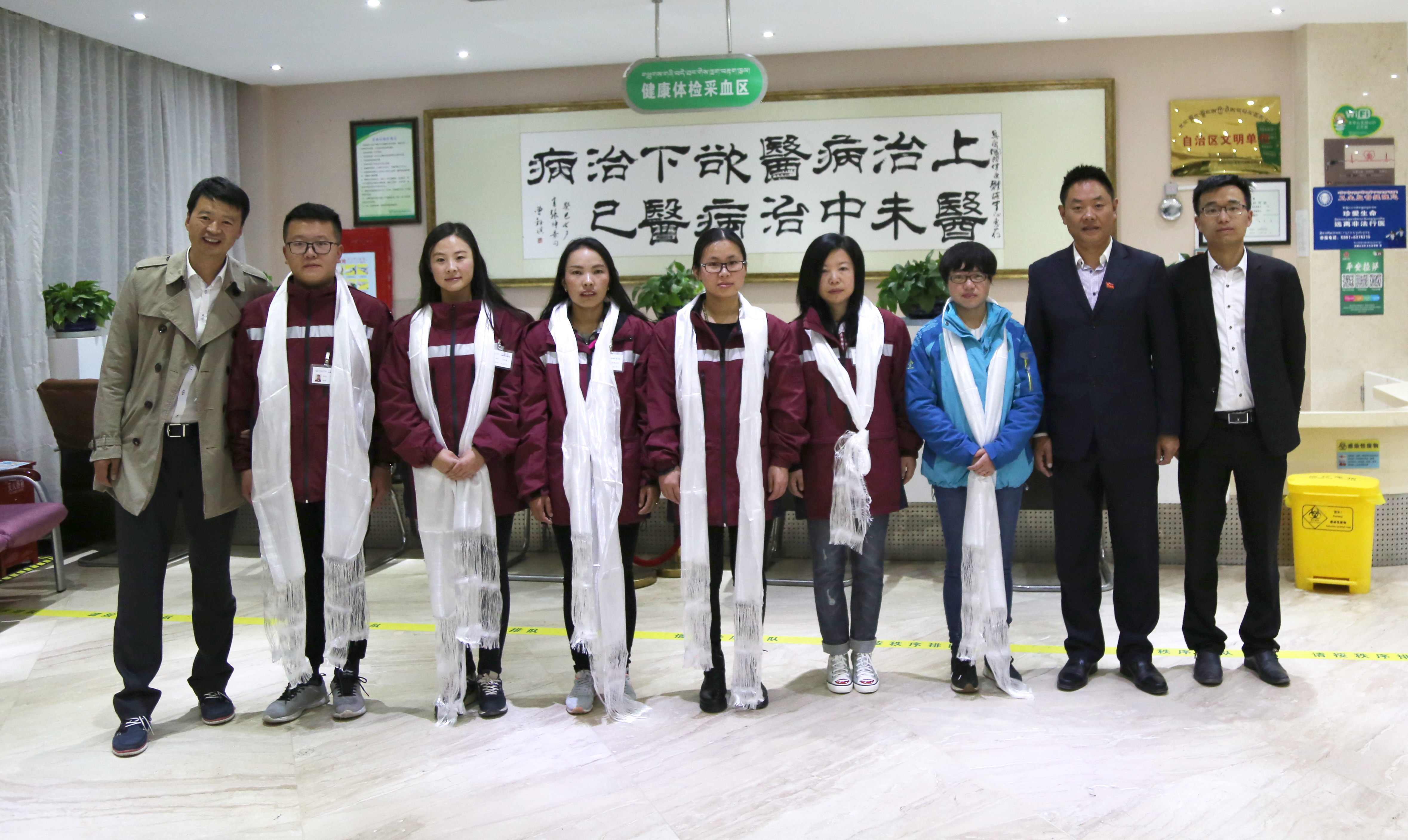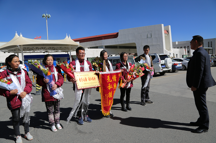? 值此秋高氣爽、碩果累累的豐收季節(jié),10月23日,阜康醫(yī)療隊圓滿完成阿里地區(qū)包蟲病義務篩查任務,滿載榮譽而歸,隨著醫(yī)療隊全體成員從拉薩機場緩緩走出,陳彬副書記代表公司黨委對他們表示了熱烈的歡迎,并為每位隊員獻上鮮花和哈達,歡迎他們回家。
