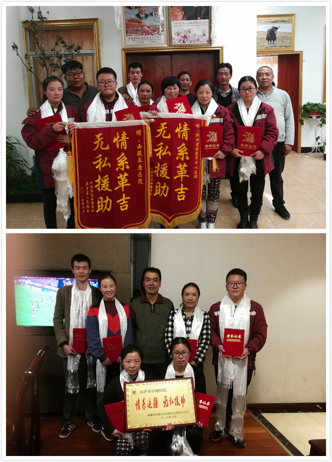 為表彰阜康醫(yī)療隊在阿里包蟲病篩查中所作出的貢獻,阿里地區(qū)包蟲病綜合防治辦公室授予我院“情系邊疆,無私援助”錦旗,中共革吉縣委員會、革吉縣人民政府授予我院“情系革吉、無私援助”榮譽稱號,阿里地區(qū)衛(wèi)計委、革吉縣衛(wèi)生局為醫(yī)療隊的每一位成員頒發(fā)榮譽證書。