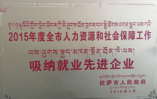 2015年度全市人力資源和社會保障工作吸納就業(yè)先進(jìn)企業(yè)拉薩市人民政府