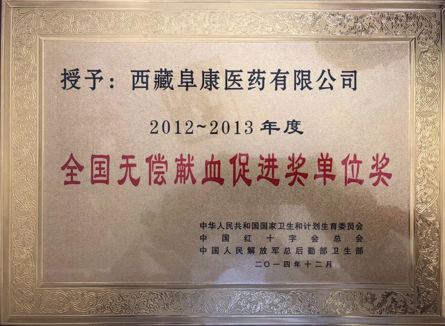 2012-2013年度 全國無償獻(xiàn)血促進(jìn)獎單位獎中華人民共和國國家衛(wèi)生和計劃生育委員會