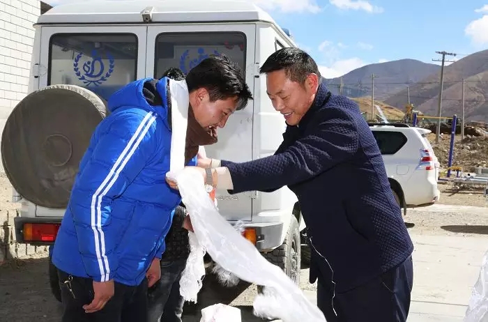 ●公司黨委副書(shū)記、副總經(jīng)理陳彬?yàn)榧卫杩h夏瑪鄉(xiāng)一村村民獻(xiàn)上哈達(dá)