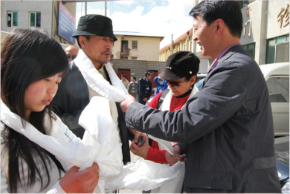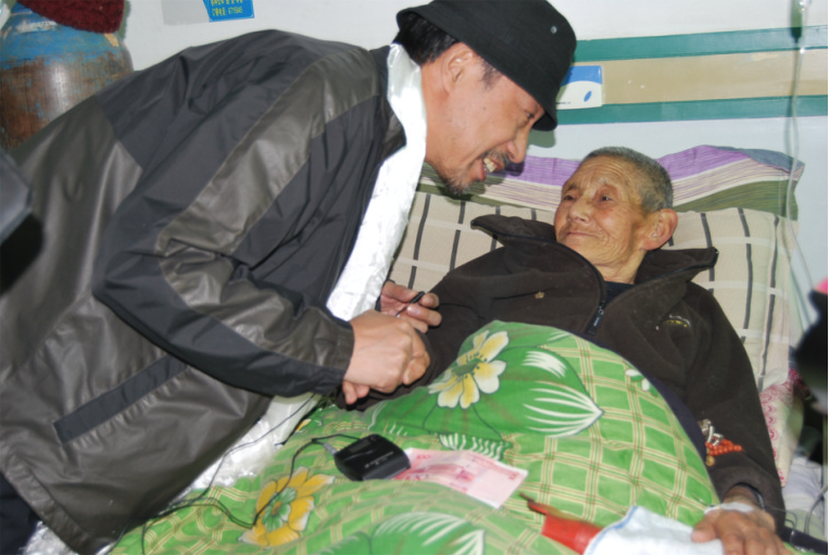 這次感恩之旅最艱難的地方就是大家對(duì)西藏高原氣候的極度不適應(yīng)。果然, 到達(dá)了西藏后,孫海英就發(fā)生了嚴(yán)重的高原反應(yīng), 身體虛弱到了極點(diǎn)。同行的工作人員為了防止意外,一度打算取消這次探訪。但孫海英請(qǐng)求大家稍等自己一會(huì)。半個(gè)小時(shí)后,經(jīng)過(guò)簡(jiǎn)單救治以后,盡管他的不適反應(yīng)并沒(méi)有完全消除,但孫海英仍然準(zhǔn)時(shí)出現(xiàn)在大家面前。