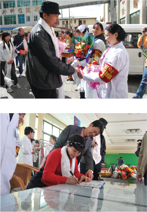 在大災(zāi)難面前,人與人之間的關(guān)愛(ài)超越了地域,超越了民族,超越了血緣。去年地震中受災(zāi)的田啟蘭和一支來(lái)自西藏的醫(yī)療隊(duì)一一阜康醫(yī)院醫(yī)療救援隊(duì)的醫(yī)護(hù)人員結(jié)下了深厚的感情。汶川大地震發(fā)生后的第二天,阜康醫(yī)院醫(yī)療救援隊(duì)以最快的速度到達(dá)四川展開(kāi)救援,每天救治的病人超過(guò)500人,先后為.上萬(wàn)人進(jìn)行了醫(yī)治,為2500多人挽留了寶貴的生命!在救援過(guò)程中,這支西藏醫(yī)療救援隊(duì)接收到了一位已經(jīng)奄奄一息的婦女一一田啟蘭。她在地震中,與女兒、丈夫等親人都失去了聯(lián)系,精神瀕臨崩潰邊緣的田啟蘭拒絕任何進(jìn)食,并表現(xiàn)出自殺的傾向。藏族醫(yī)護(hù)人員索珍用沾滿(mǎn)葡萄糖水的棉簽, 不停地擦拭她的嘴唇,并陪同她談心一天一夜,直至她解開(kāi)心結(jié),同意配合醫(yī)生接受治療。