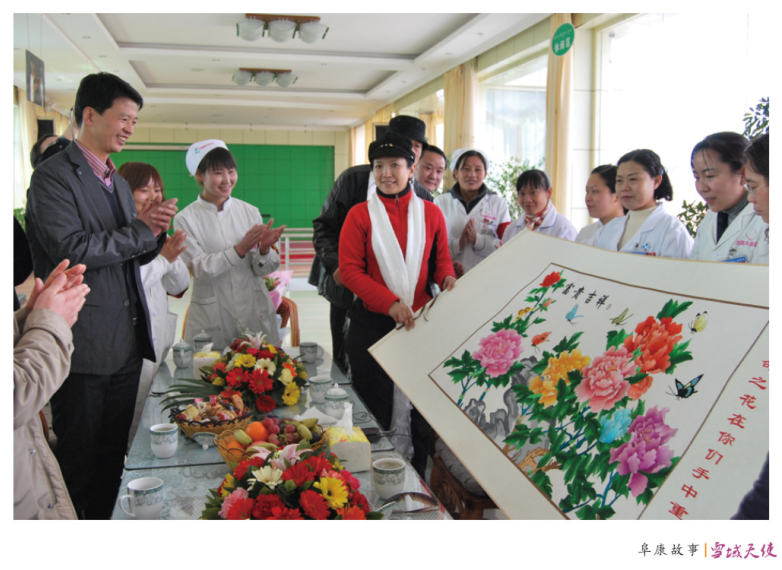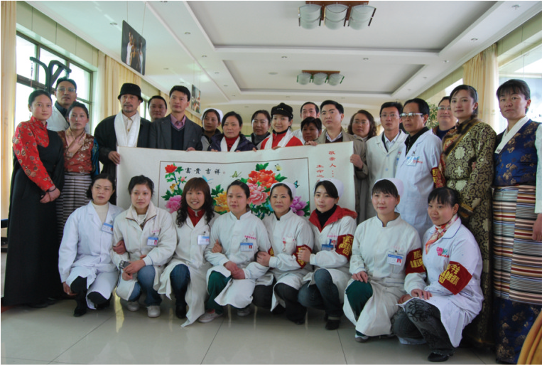 此次的西藏之行,田啟蘭專(zhuān)門(mén)代表綿竹人民準(zhǔn)備了一副《富貴吉祥》手工刺繡圖,表達(dá)災(zāi)區(qū)群眾的感激之情。這幅刺繡是田啟蘭和幾名繡女不分晝夜趕制出的。對(duì)于田啟蘭來(lái)說(shuō),這不僅是一次感恩之旅,更是去探望自己“家人”的溫馨之旅。 而孫海英呂麗萍夫婦了解到,阜康醫(yī)院醫(yī)療救援隊(duì)醫(yī)療一直在免費(fèi)收治有困難的患者。在探訪時(shí),有一位70多歲的老人就正在接受治療,所有的費(fèi)用都是該公司董事長(zhǎng)一個(gè)人承擔(dān)。得知這個(gè)情況后, 孫海英夫婦當(dāng)即掏出自己隨身攜帶的全部3000多元現(xiàn)金捐獻(xiàn)出來(lái)。在了解索珍有身孕在身,孫海英夫婦和田啟蘭又一起買(mǎi)了禮物去看望這位白衣天使。