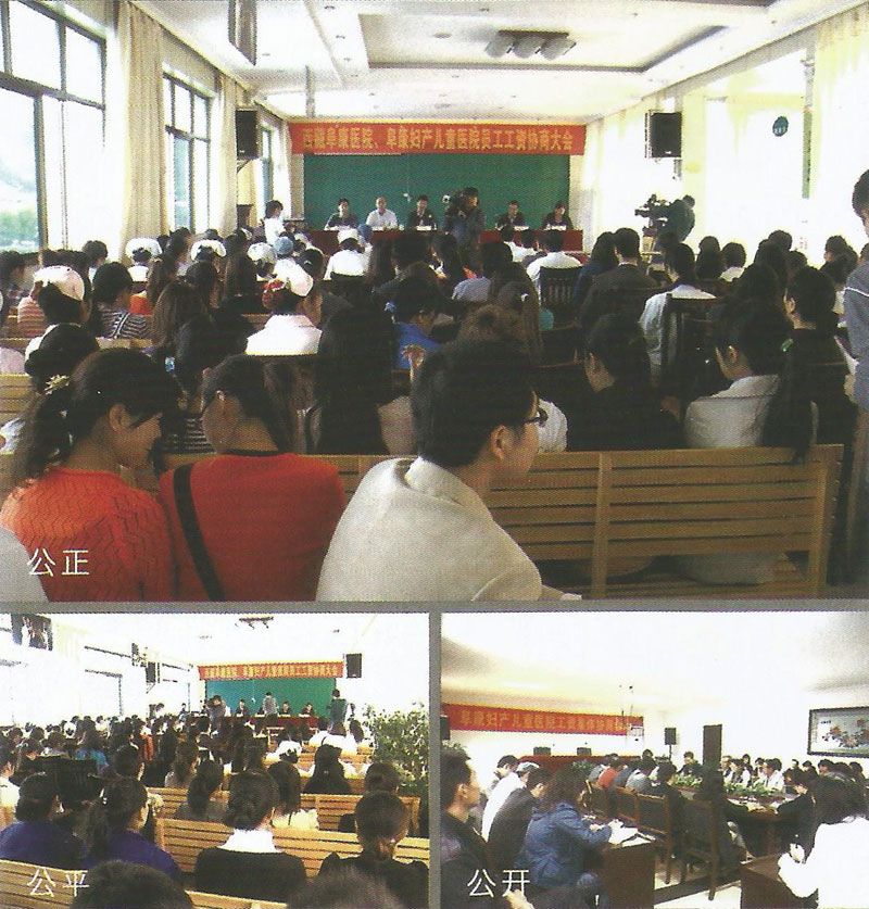 2011年9月10日下午,西藏阜康醫(yī)院、阜康婦產(chǎn)兒童醫(yī)院召開(kāi)了全院?jiǎn)T工工資協(xié)商大會(huì)。王斌董事長(zhǎng)及醫(yī)院主要領(lǐng)導(dǎo)宣布了工資集體協(xié)商的一致意見(jiàn)。本次會(huì)議就阜康內(nèi)部員工工資分配制度、工資分配形式、工資支付辦法、工資標(biāo)準(zhǔn)等事項(xiàng)進(jìn)行了平等協(xié)商,并達(dá)成了一致意見(jiàn)。