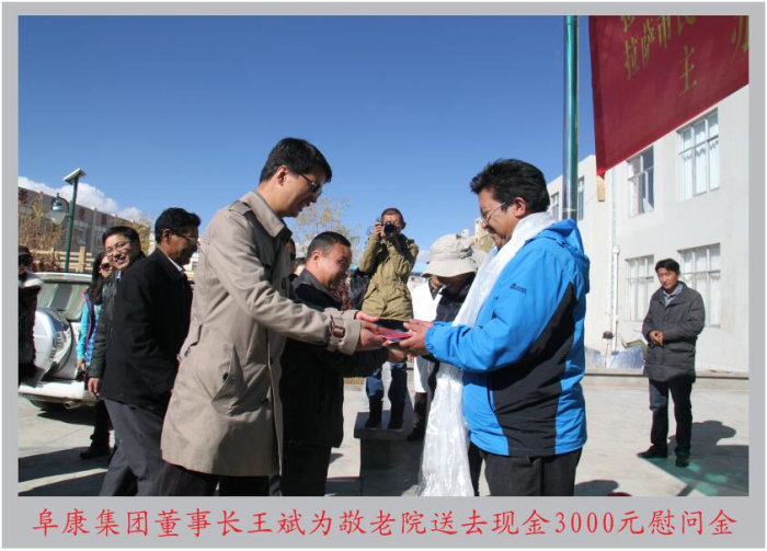 西藏高寒缺氧,自然環(huán)境惡劣。60多年前,這里的人均壽命才35.5歲。然而到了2012年,光拉薩的七縣一區(qū)就有16位百歲老人,正是這些百歲老人,見證了西藏翻天覆地的巨變,他們是全社會(huì)的寶貴財(cái)富,更是西藏從貧窮落后走向繁榮富強(qiáng)的親歷者、見證者。在全國(guó)人民喜迎黨的十八大勝利召開之際,西藏阜康(國(guó)際)健康體檢中心與拉薩市民政局老齡辦組織發(fā)起了“關(guān)愛百歲老人行動(dòng)”。此次行動(dòng)歷時(shí)16天,里程2000多公里,尋訪了拉薩七縣一區(qū)十一位百歲老人,不僅為每位老人送上了精心準(zhǔn)備的三千元現(xiàn)金、五千元健康體檢卡、一個(gè)便攜式氧氣瓶、一個(gè)便攜式血壓儀,還為他們送上了免費(fèi)義診和相關(guān)藥品。王斌董事長(zhǎng)參加了此項(xiàng)活動(dòng)的啟動(dòng)儀式,嘎布院長(zhǎng)、張德才院長(zhǎng)親自帶隊(duì)為每一位百歲老人做了常規(guī)的身體檢查,并送上了藥品和祝福。