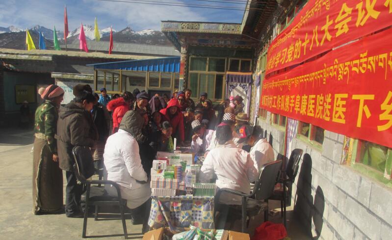 2012年12月5日,上午10點(diǎn),拉薩的太陽高高地懸掛在天空,溫暖、舒適,我們四人在我院醫(yī)生王峰的帶領(lǐng)下,開著越野顛簸在高原崎嶇的路上。此行,帶著我們阜康人的溫暖、帶著我們的專業(yè)技術(shù)、帶著我們阜康醫(yī)院一萬多元的藥品,去山南洛扎縣木村,為當(dāng)?shù)氐睦习傩账歪t(yī)送藥。