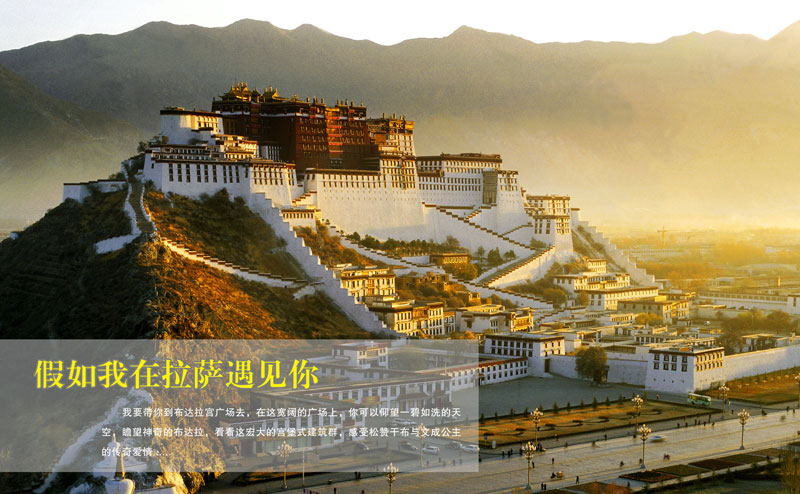 假如我在拉薩遇見你,我將像這座城市一樣,用明媚的陽光溫暖你;用成熟、穩(wěn)重、寬廣的胸懷,把你擁在懷里;用古樸、神秘的妝容將你留在夢里。
