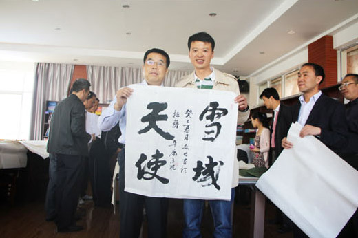 董昭禮主席對(duì)此非常高興地說:“感謝在西藏工作的安徽人士的熱情款待,也感謝阜康集團(tuán)為我們提供書畫交流的場(chǎng)所,更感謝王斌董事長(zhǎng)的細(xì)心照顧。扎西德勒!