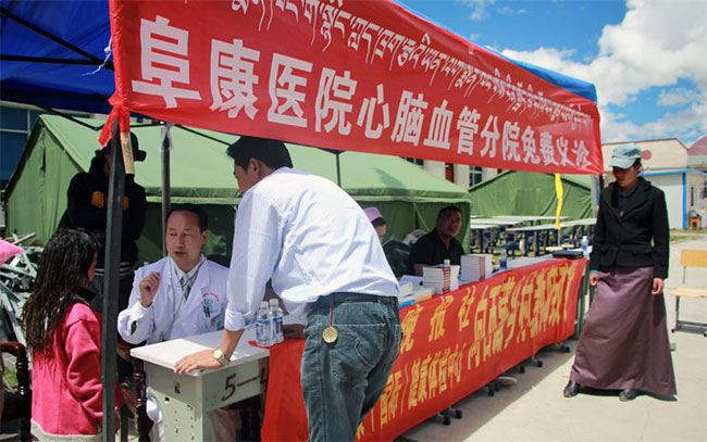 在給學校的師生體檢的過程中,西藏阜康醫(yī)院心腦血管分院的內科主任于永軍發(fā)現(xiàn)由于這兩所學校的條件艱苦,這里的許多孩子缺少維生素攝入,出現(xiàn)了臉色發(fā)黃、毛發(fā)干枯等癥狀,而這些正是貧血的表現(xiàn),需要合理搭配飲食,多吃綠色蔬菜及含鐵量高的食物。而給老師檢查出的病情則與高寒環(huán)境有直接關系,多數(shù)老師患有高血脂、高血壓等疾病。