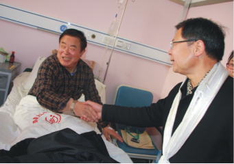 每年春節(jié)及藏歷新年院領(lǐng)導(dǎo)都會(huì)親自帶隊(duì)慰問(wèn)病人,這已成為“阜康”與患者間特有的一種情感交流。一聲聲真誠(chéng)的祝福、一陣陣爽朗的笑聲,描畫出- -幅和諧的醫(yī)患關(guān)系圖。
