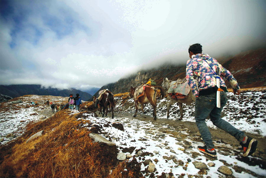 多雄拉山遇騾馬駝隊(duì)