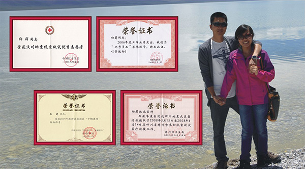 因?yàn)榭拐鹁葹?zāi)的突出表現(xiàn),2008年7月她被中國(guó)紅十字會(huì)評(píng)為“汶川地震抗震救災(zāi)優(yōu)秀志愿者”。也因?yàn)榉瞰I(xiàn)和堅(jiān)守被西藏自治區(qū)授予2009年“巾幗建功標(biāo)兵”的榮譽(yù)稱號(hào)。