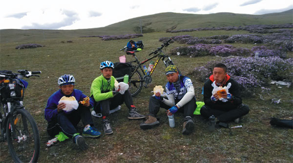 從陵園出來(lái)不久,得知那個(gè)女隊(duì)友還是堅(jiān)持騎行,于是我返回去接她,陪她一起騎行。當(dāng)我在路上碰到她的時(shí)候,她笑著問(wèn)我為什么不在前面等。要多走這么一段路。我說(shuō)我害怕孤單所以找你陪我一起,她感動(dòng)得什么也沒(méi)說(shuō)。這一天我們互相幫助通過(guò)了一段好幾公里的落石區(qū)。
