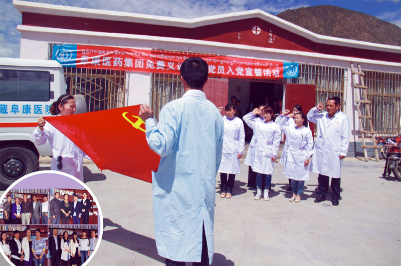 2015年7月1日為了慶祝黨建74周年,阜康醫(yī)藥集團10余名新入黨成員在來到拉薩市達孜縣唐嘎鄉(xiāng)瓊達村,舉行了莊嚴的入黨宣誓儀式,并開展了“送醫(yī)送藥”免費義診活動。此次義診活動共診治病人200余名,有80余名患者做了腹部彩超,免費發(fā)放50多種價值15000余元的藥品。