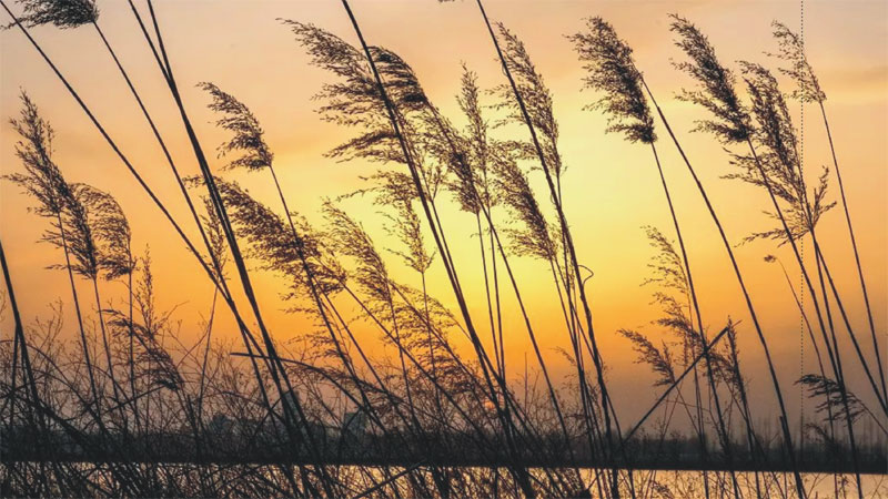 秋天,我最愛在蘆葦蕩里捉迷藏,每年那里橫七豎八的“小路”,都是我們最先踏出來的。當(dāng)蘆葦抽穗,一片泛白的時候,我和哥哥喜歡用蘆穗編成的草帽,一旦戴在頭上,我們就成了一個個上躥下跳的“白頭翁”。到了深秋,蘆葦已成熟,開出大團大團的葦絮,漫天飛舞的蘆花,似提前降臨的大雪,洋洋灑灑,它們輕盈地四處飛揚,落在河面上、村子里。我常拎著魚鱗口袋到蘆葦蕩深處,采集散落的那成片成團的蘆花。撿回家來,母親用來做枕頭、坐墊和棉門簾。我很喜歡母親用蘆花填充的枕頭,柔軟舒適,還散發(fā)著蘆花特有清香……