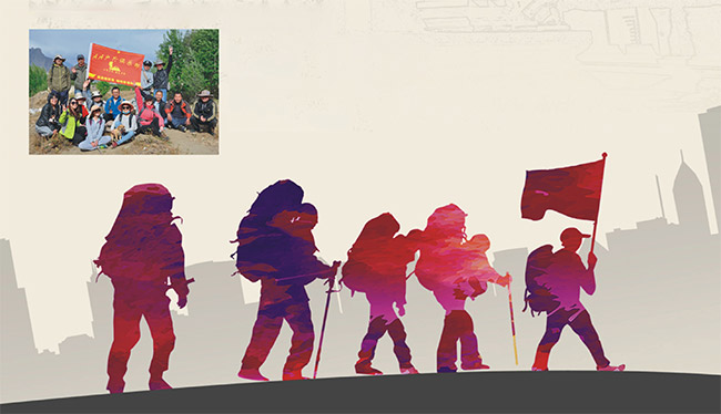 說起當(dāng)初怎么想到發(fā)起這個(gè)徒步組織,阿杜一臉驕傲。我喜歡運(yùn)動(dòng),和幾位志同道合者一商量,周末徒步吧。后來,加入的人越來越多,就建個(gè)徒步群,網(wǎng)上報(bào)名或打電話都行?;顒?dòng)一般是一天,中午伙食怎么解決?開始是自帶水果、點(diǎn)心,誰吃誰的,好像少些團(tuán)隊(duì)意識(shí)。人多了,想起伙食AA制,我們背著鍋上山,隊(duì)友帶什么的都有,水果、糕點(diǎn),葷的、素的,熟的、生的,干牛糞一燒,煮出一鍋大雜燴,又成了高原野炊。其實(shí),只要愿意參加,不在乎你帶不帶吃的,因?yàn)槲覀冇酗埻?。如今人人都能吃得飽而豐富,又不提倡多帶,盡量做到吃得干干凈凈,既輕松又節(jié)約還環(huán)保。