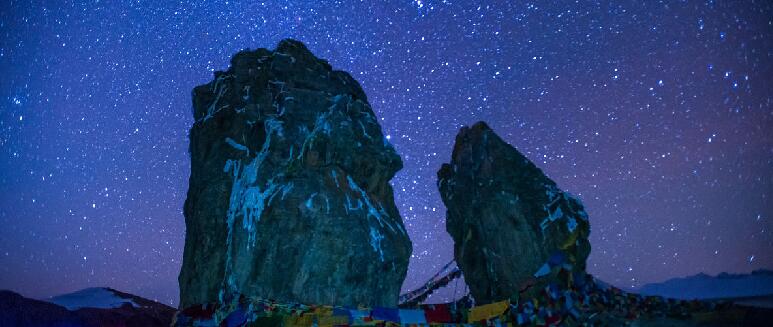 待得夕陽落盡,繁星滿天,九垓汗漫,玉宇無塵,皓月灑下一天一地的清輝,照得湖面靜沉沉如一塊青碧琉璃。天上桂魄流光,地下瑩玉幻彩,上下爭(zhēng)輝之際,人處其中,如置身于晶宮鮫室,亦幻亦真,似臨仙境。納木錯(cuò)是藏密圣地,緣湖一帶似也受到佛法洗禮,便如禪那洞天,菩提妙境。佛學(xué)無法無相,漫無涯涘,水之為物,也是隨圓就方,緣物賦形,納木錯(cuò)正契合佛法妙諦。