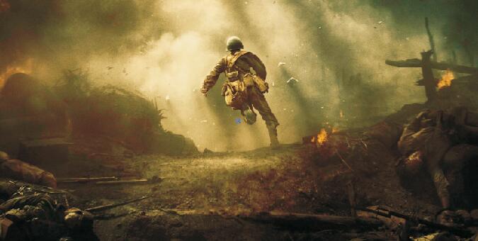 自有聲電影問(wèn)世以后,好萊塢對(duì)實(shí)感近乎偏執(zhí)地追求,改寫了全球的觀影標(biāo)準(zhǔn),也讓好萊塢后來(lái)居上,遠(yuǎn)超歐洲同行。梅爾·吉布森更是擅長(zhǎng)用暴力和血腥表現(xiàn)戰(zhàn)場(chǎng)的實(shí)感和戰(zhàn)爭(zhēng)的殘酷:美軍戰(zhàn)列艦406毫米主炮的轟鳴,勃朗寧重機(jī)槍的子彈呼嘯,M4坦克的陣陣碾壓,還有迸飛的殘肢,爆裂的人頭……絞肉機(jī)般的鋼鋸嶺成了人間地獄,與它極端對(duì)立的正是主人公戴斯蒙德·道斯的醫(yī)者仁心。