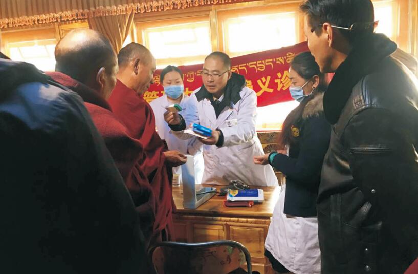 11月28日上午,我院慢病管理中心組織5位醫(yī)護(hù)人員在甘丹寺共計(jì)為200多名僧侶進(jìn)行免費(fèi)測(cè)血壓、血糖、氧飽和度以及發(fā)放常見疾病的藥物。義診期間得到了羅布次仁處長(zhǎng)、索次主任的大力支持與幫助。體檢完畢后,羅布次仁處長(zhǎng)帶領(lǐng)醫(yī)護(hù)人員參觀了寺廟的主殿,并贈(zèng)予甘丹寺主殿的金色哈達(dá),以表對(duì)阜康工作人員的感激之情。